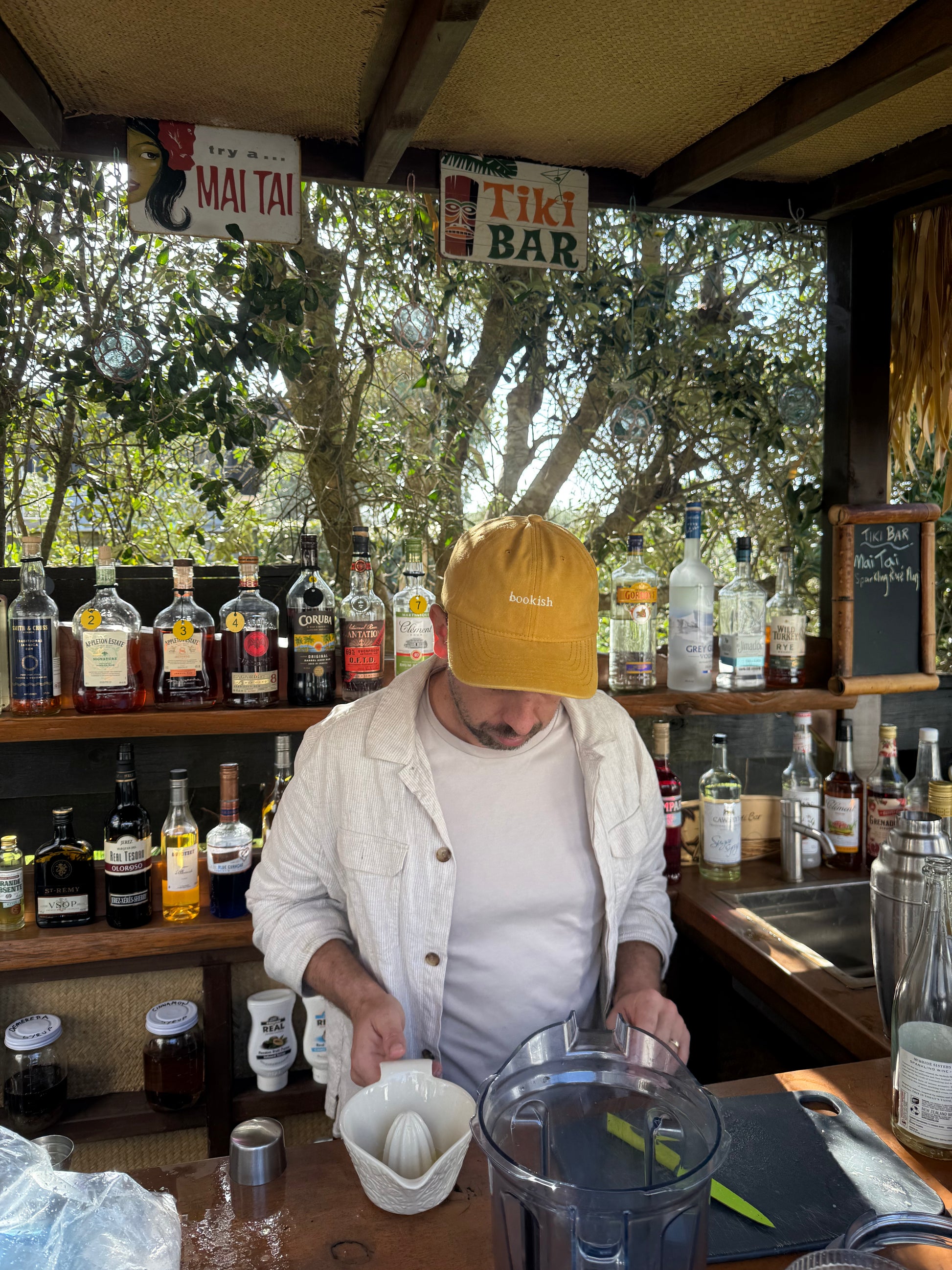mustard hat with bookish